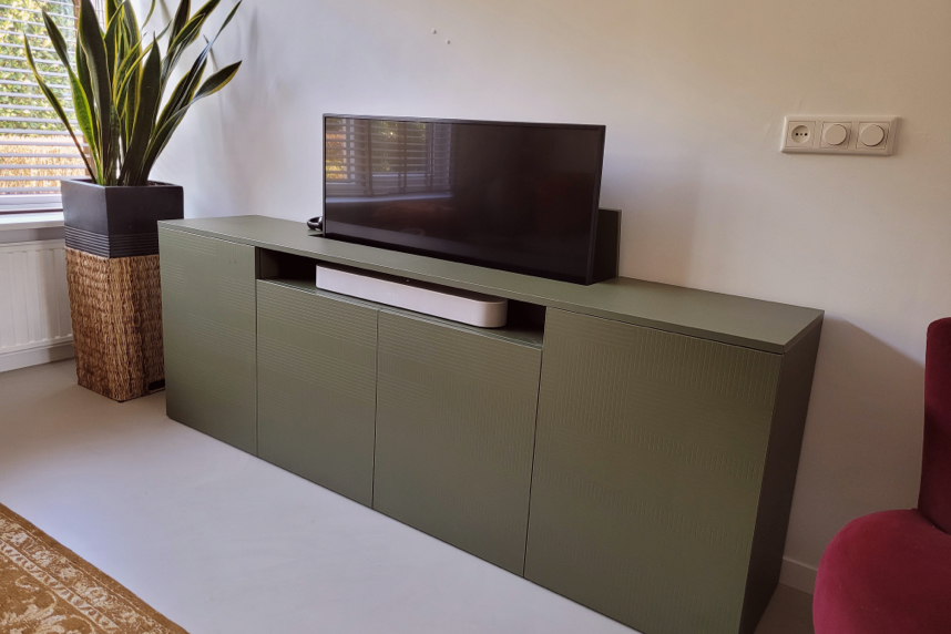 A TV unit with built-in TV lift is a jewel in your interior. TVLIFTBOY offers this option! We supply a modern TV cabinet in a basic white colour as standard. But you can have the furniture finished in any colour you want. Would you prefer something made to measure? This is possible. Choose your favourite type of wood, drawers or doors. Our TV lift furniture is stylish and will suit any room in your home. The TV lift can be tailored to the size of your TV and the desired viewing height.