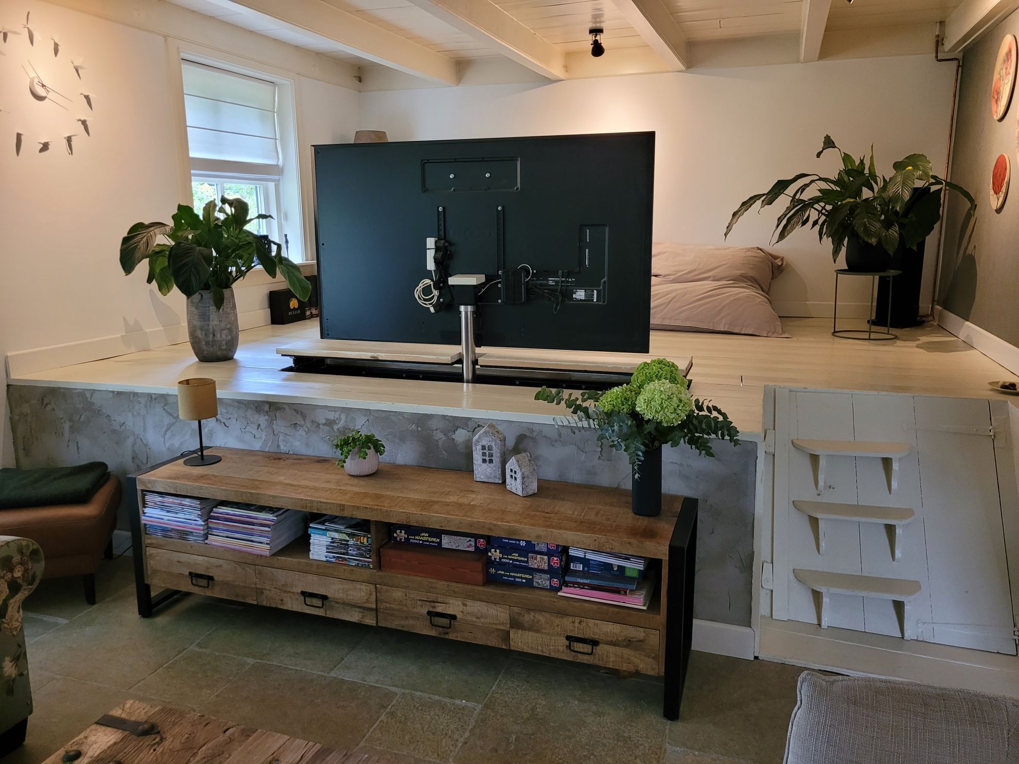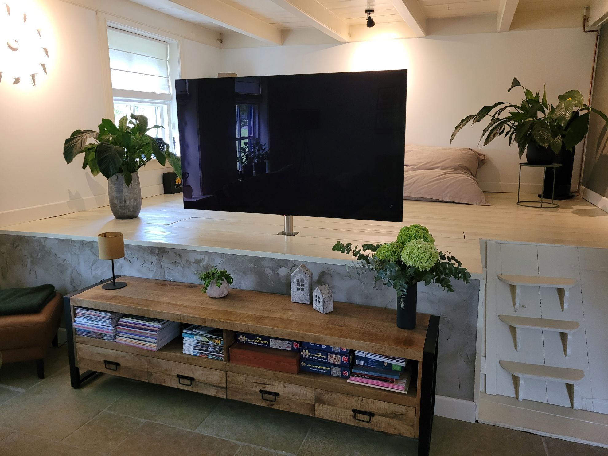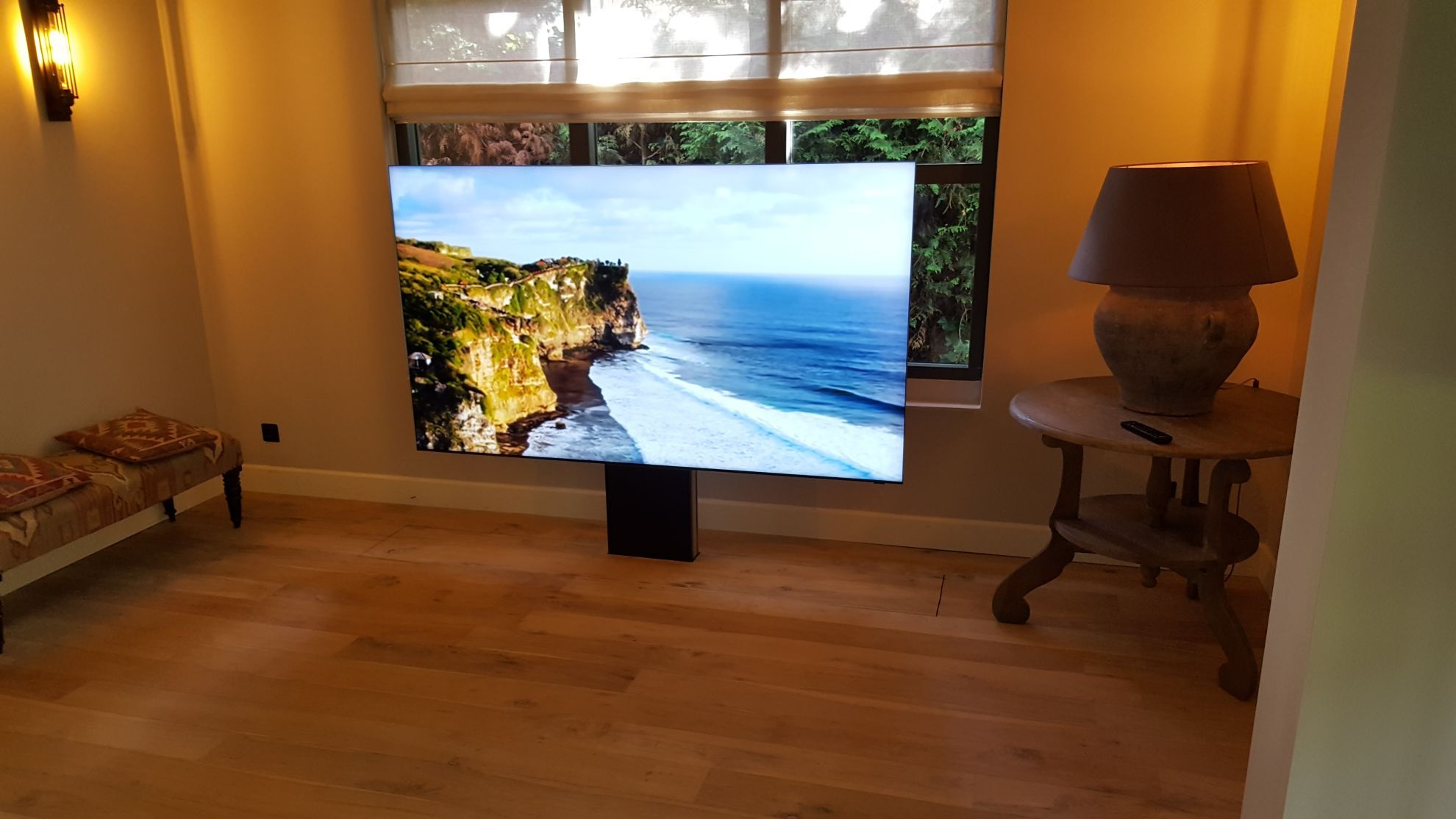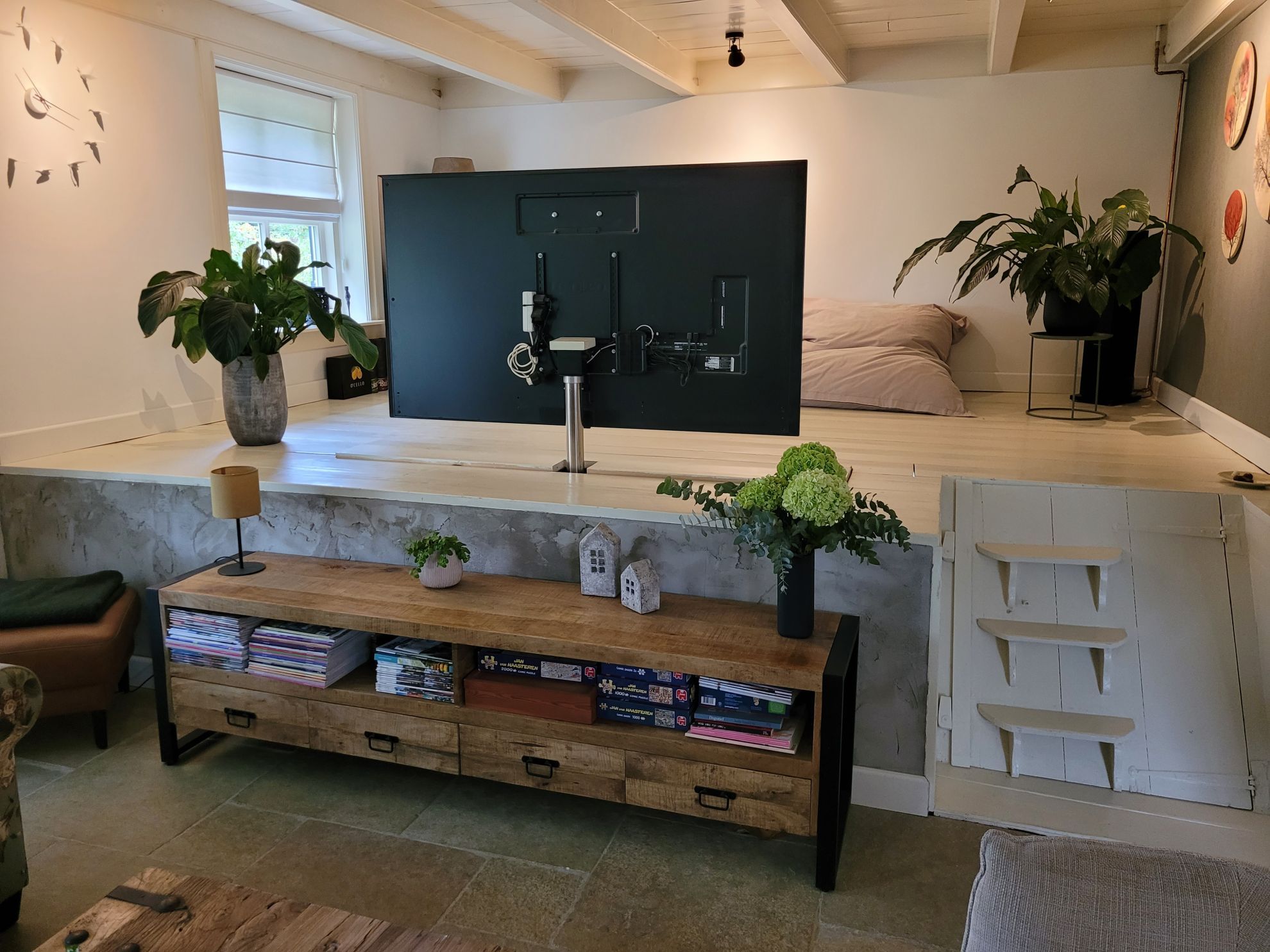TVLIFTBOY supplies various floor lifts for TVs and monitors. A beautiful solution for your interior, that keeps the floor space free. No big screens in sight, but concealed in the floor. Among other things, the floor lift has a motorised flap, which you can cover with parquet or tiles, for example. It is a pop-up lift, low-noise and set at the right viewing height.